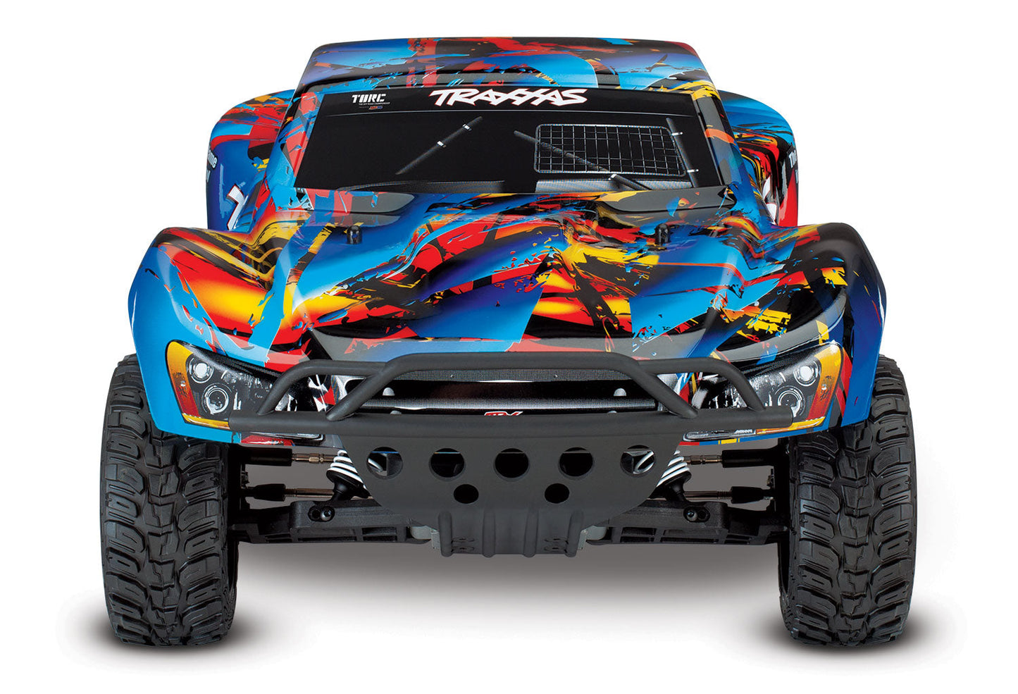 The Traxxas Slash short-course race truck puts you in the driver's seat for intense fender-to-fender, high-flying off-road action. Bring home the thrill of 900+ horsepower full-scale racing and head-to-head competition to your own backyard. The rear-wheel drive Slash is purpose built to fly over jumps and rip full-throttle through the turns. The Slash hangs it out for an all new way to challenge your driving skills. The 4-wheel independent suspension and racing tires carefully replicate real world driving and handling experience as closely as possible. The Slash #58024 arrives fully assembled and ready to complete with the battery of your choice (sold separately).