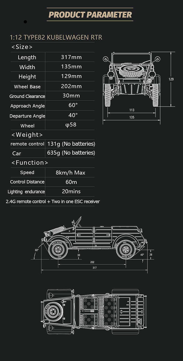 - 1 x 1:12 TYPE82 KUBELWAGEN RTR