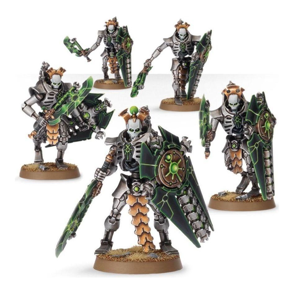 The Lychguard are the wardens of the nobility, said to be utterly dedicated to their charges. While most Necrons wear a suit of living metal, the Lychguard wear huge suits of ancient armour.