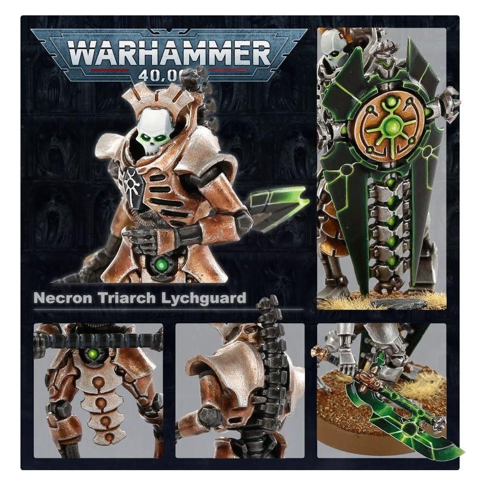 This multi-part plastic boxed set contains 111 components, five Citadel 32mm Round Bases and two Necron transfer sheets with which to build five Necron Lychguard or five Triarch Praetorians.
