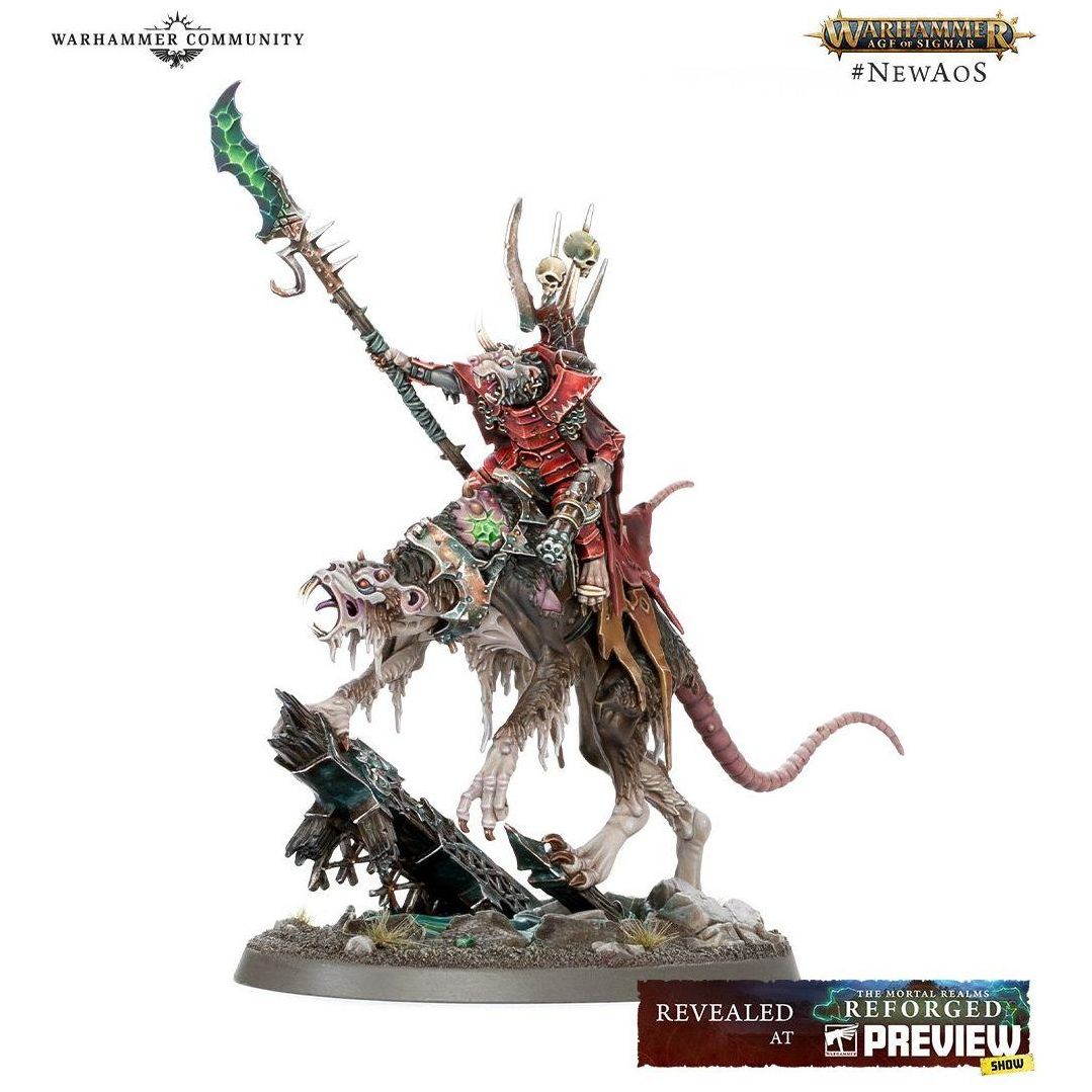 The Skaven are treacherous ratmen congenitally willing to stab even their closest ally in the back if it would bring them one claw closer to power. Nevertheless, after an audacious series of cunning rituals, the Skaven have managed to crash the nightmarish sub-dimension of Blight City into the Mortal Realms, and are now pouring forth in never-before seen numbers as the Great Horned Rat takes his rightful place among the Chaos pantheon.